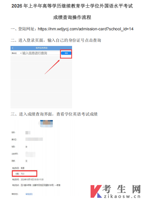 西华师范大学2026年上半年学历继续教育学士学位外语水平考试结果查询通知